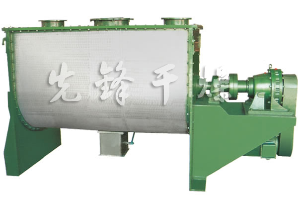 該機型由容器、螺旋攪拌葉片和傳動(dòng)部件組成:螺旋葉片一般做成雙層或三層,外層螺旋將物料從兩側向中央匯集,內層螺旋將物料從中央兩側輸送,形成對流混合。